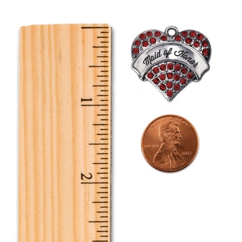 Silver Red Maid of Honor Red Pave Heart Charm Toggle Bracelet