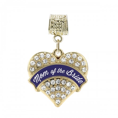 Our sparkling memory charm, equipped with a stylish charm attachment ring and the Clear Mom of the Bride pave heart charm, is crafted from white metal with a gold plated finish and accented with cubic zirconia stones.