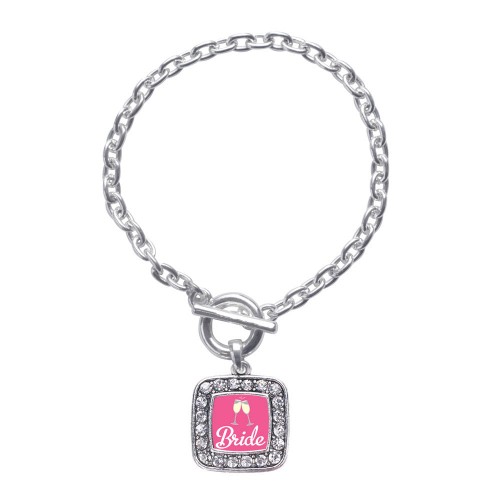 Silver Script Red Sis of the Bride Red Pave Heart Charm Toggle Bracelet