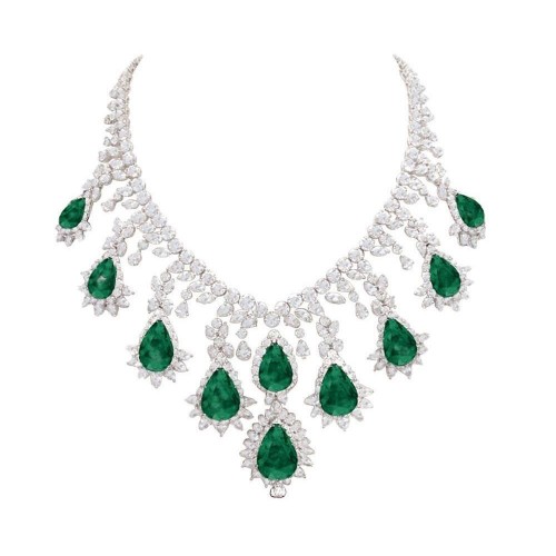 Stone Specifications: There are approx. 123.80 carats of emeralds and approx. 102.80 carats of diamonds in the necklace. Natural earth mined diamonds.