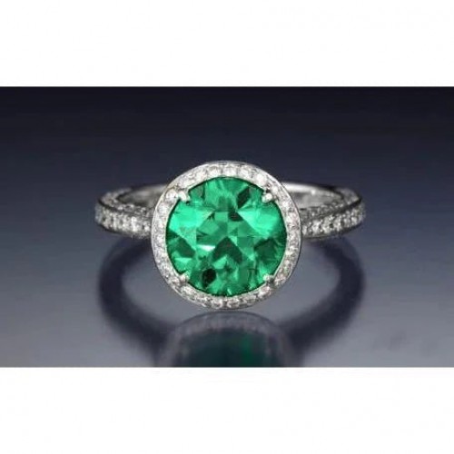 Stone Specifications: There is one green emerald in the center of approx. 10 carats and approx. 0.50 carats of smaller diamonds on the side. Natural earth mined stones.