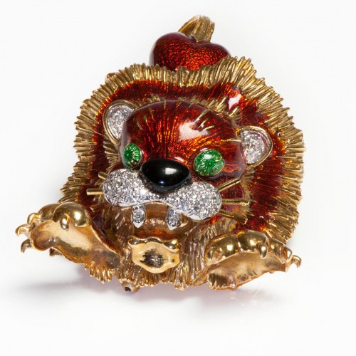 Hammerman Brothers 18K Gold Enamel Diamond Lion Brooch