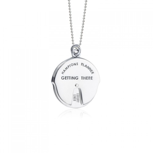 On the small internal wheel of your double-sided Hamptons Planner Charm, you’ll discover eight choices for “Getting There” (Yacht, Sea plane, Helicopter, Range Rover, Uber, Luxury liner, Jitney, and LIRR) and for “Staying In” (Southampton, Easthampton, Bridgehampton, Sag Harbor, Quogue, Amagansett, Montauk, and Water Mill).