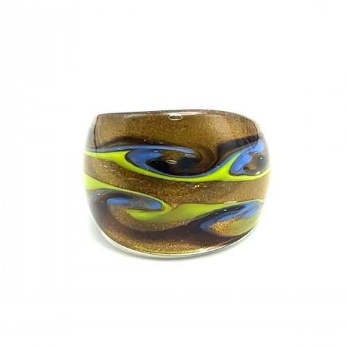Handmade Glass Acrylic Ring Amber Radiance Silver Luster Infinity Band: US Ring Size 9