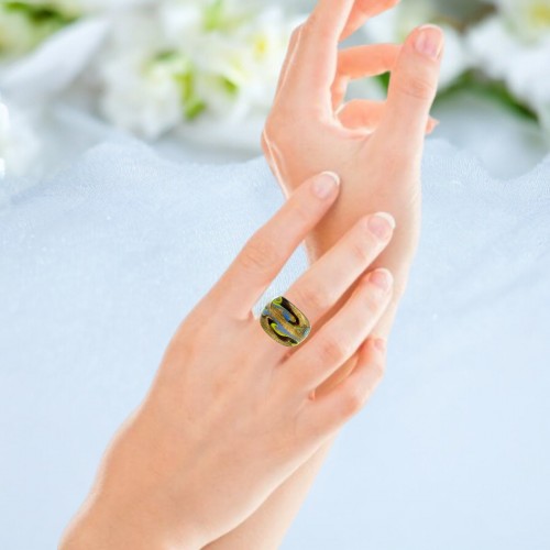 Handmade Glass Acrylic Ring Golden Arabesque’s Chromatic Infinity Band