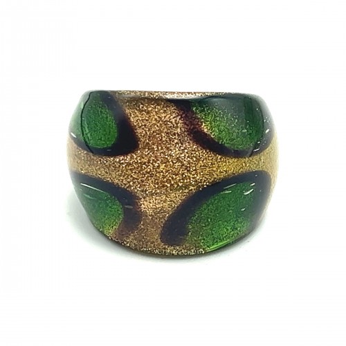 Handmade Glass Acrylic Ring Golden Autumn Citrus Foliage Infinity Band