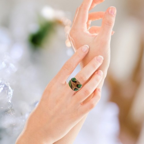 Handmade Glass Acrylic Ring Golden Blossom of Meadow Infinity Band: US Ring Size 9