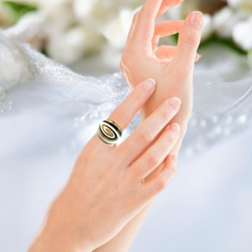 Handmade Glass Acrylic Ring Golden Galactic Mono chrome Infinity Band
