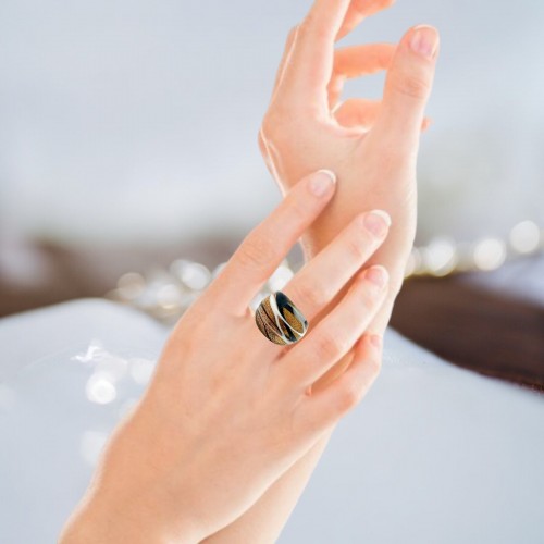 Handmade Glass Acrylic Ring Golden Monochrome Chic Panda Infinity Band