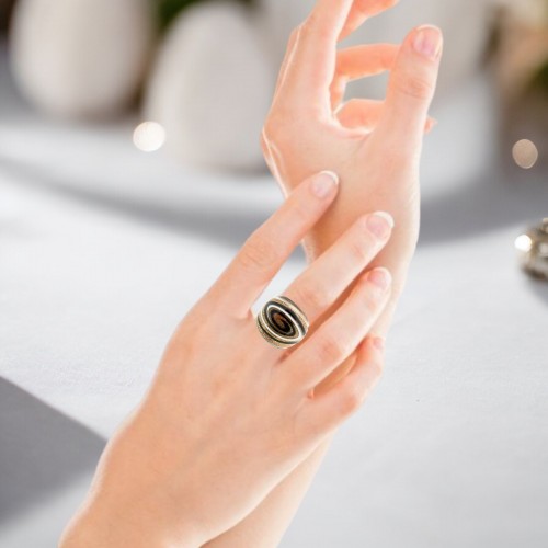 Handmade Glass Acrylic Ring Golden Monochrome Radiance Infinity Band: US Ring Size 6.5