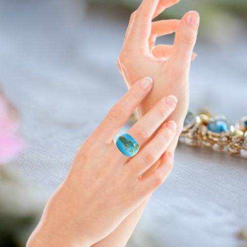 Handmade Glass Acrylic Ring Golden of Azure Horizon Infinity Band