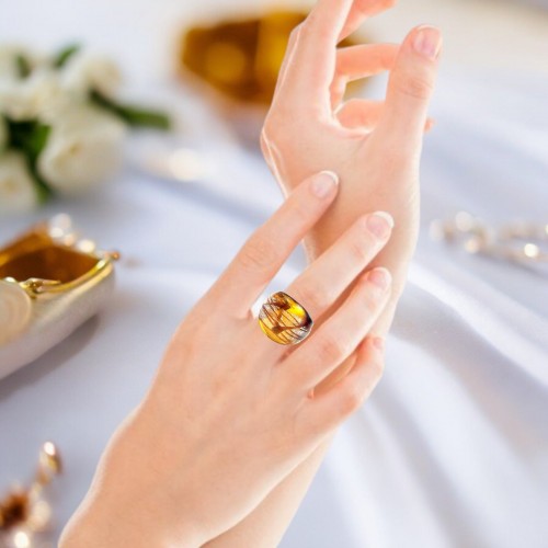 Handmade Glass Acrylic Ring Luster Radiance Amber Silver Infinity Band