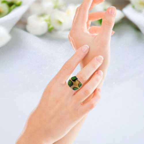 Handmade Glass Acrylic Ring Meadow’s Golden Bloom Infinity Band