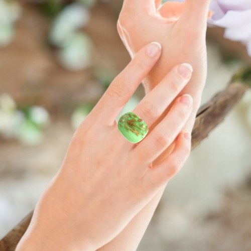 Handmade Glass Acrylic Ring Mint Elegance Golden Sparkle Infinity Band: US Ring Size 8.5