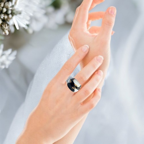 Handmade Glass Acrylic Ring Monochrome’s Gilded Elegance’s Infinity Band