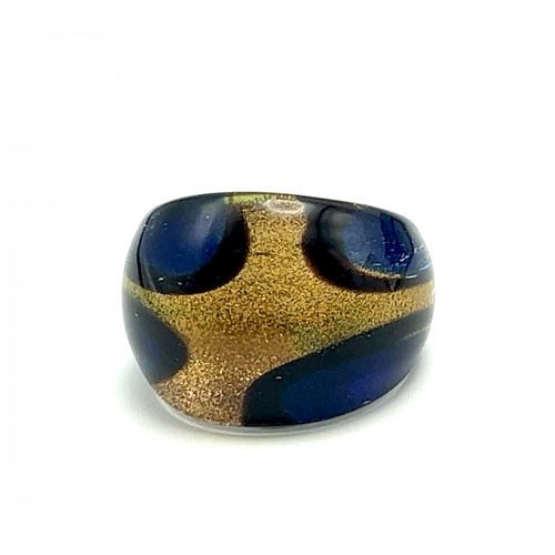 Handmade Glass Acrylic Ring Navy Golden Floral Infinity Band