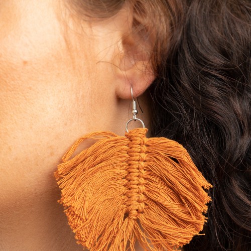 Varying in size and shape, a hearty collection of glassy, hammered, and polished orange beads are threaded along an invisible wire below the collar. Dainty silver beads and discs are sprinkled along the colorful collaboration for a shimmery finish. Features an adjustable clasp closure.