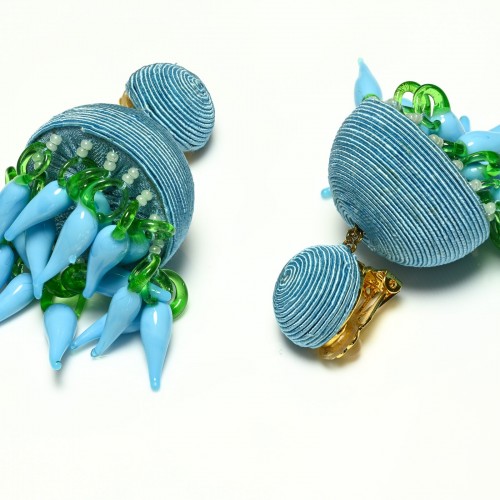 A masterwork of artisanal elegance, these statement earrings by Iradj Moini fuse rich, jewel-toned amethyst with vivid turquoise resin in a dazzling composition of color and form. Each piece is handcrafted in Manhattan, showcasing the designer’s signature opulence through intricate stone setting and a sculptural silhouette.