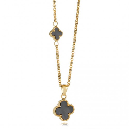 Italgem – Yellow Stainless Steel Mother Of Pearl & Black Acetate Reversible Clover Necklace 18″