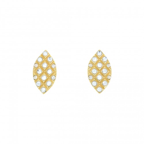 - Purple cabochon bead drop earrings with rhinestone embellishments