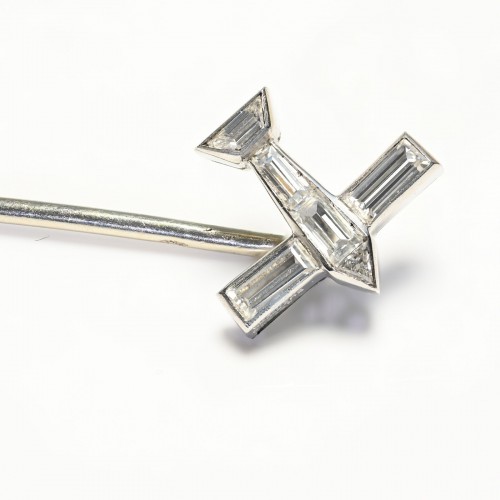 Lacloche Frères Art Deco Platinum Fancy Diamond Airplane Stick Pin