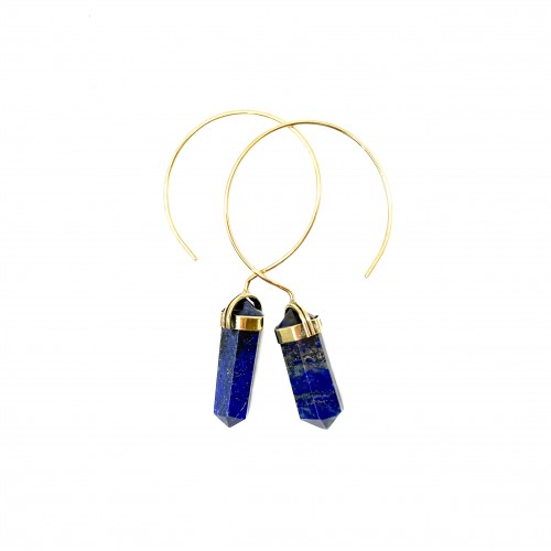 - Lapis Lazuli Crystal Point Brass Hoop Earrings