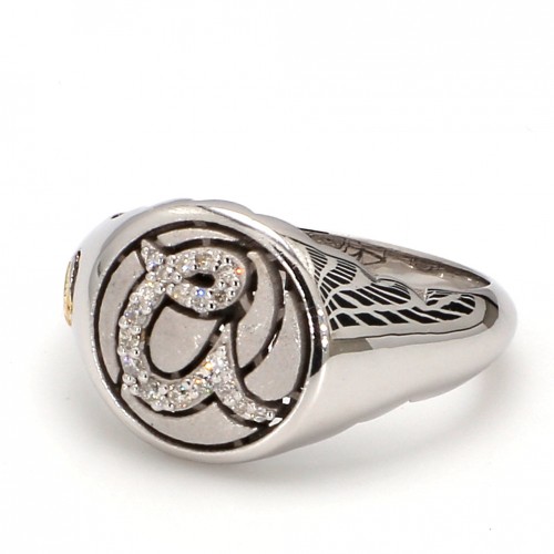 A timeless classic reimagined with a modern twist. Four rolling ring features three interlocking bands in rich 18K rose, yellow, and white gold. symbolizing unity and connection. One palladium band is delicately set with shimmering diamond pavé, adding just the right amount of sparkle to this versatile piece. Effortlessly stylish, this ring glides smoothly with every movement and is perfect for daily wear or a meaningful gift.