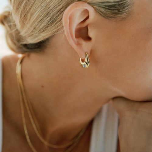 These sculptural chunky small hoops feature a hidden hinge for the ultimate seamless look. Your new everyday classics, pair with studs for a minimal ear stack.