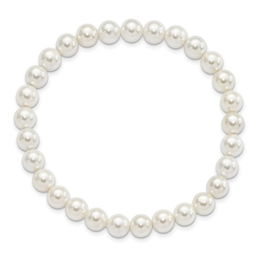 Majestik 7- White Imitation Shell Pearl Stretch Bracelet 8mm