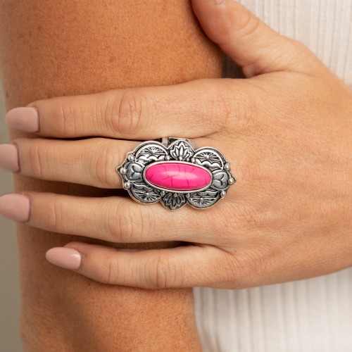 Encrusted in row after row of hematite rhinestones, a glittery gunmetal bead gives way to a plume of shiny pink thread for an elegantly tasseled look. Earring attaches to a standard fishhook fitting.