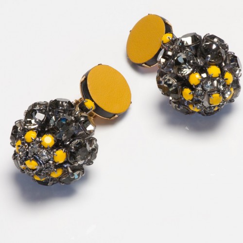 Marni Yellow Leather Gray Crystal Drop Ball Earrings