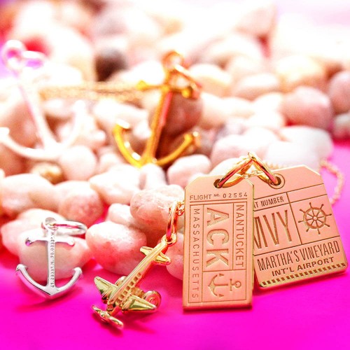 This 14k gold vermeil Massachusetts luggage tag charm features the Martha’s Vineyard Airport IATA code, MVY. Your trip to “The Vineyard” island will provide sweet and salty memories of exploring beautiful beaches in this fisherman’s paradise. Venture Up-Island and Down-Island and discover that the preserved elegance of Martha’s Vineyard echoes everything a vacation requires.