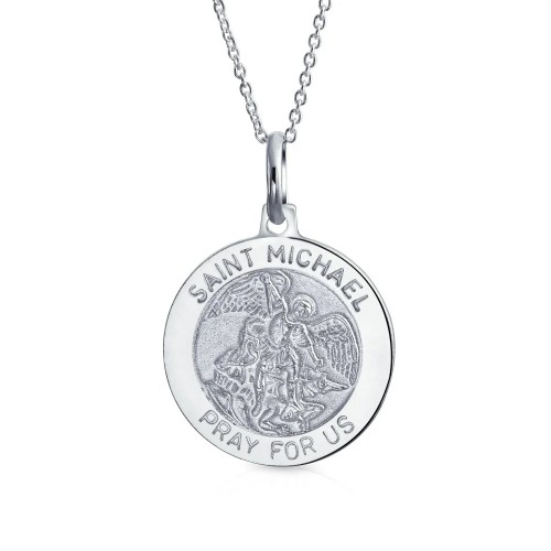 Yellow 14K Gold Saint Michael Pendant Necklace Archangel Medallion for Men