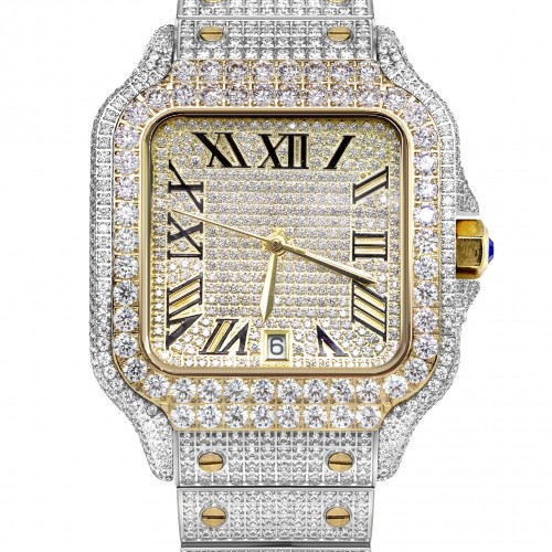 Elevate your wrist game with our square shape two tone iced out watch, a true masterpiece of luxury. Each VVS Simulated Iced Out VVS is meticulously prong-set, adorning not just the dial, but also the bezel, case, and band, creating a dazzling display of opulence. Crafted from durable gold plated stainless steel, this 43MM timepiece is as sturdy as it is stylish, fitting comfortably with its 8.5″ length. Its practical features, including a secure butterfly clasp and date function, are seamlessly integrated with the automatic sweeping second hand movement, ensuring you stay punctual in the most exquisite fashion. Elevate your wristwear collection with this timeless statement piece.