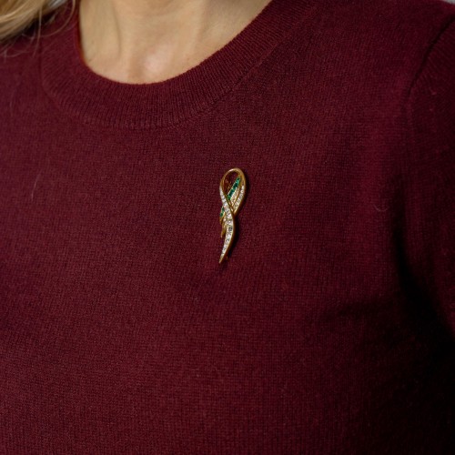 This refined Mid-Century brooch embodies the poised glamour and balanced design language of the 1950s, showcasing a harmonious interplay between luminous diamonds and vibrant emeralds. The Old European cut diamonds offer a soft, romantic brilliance, their gentle faceting creating depth and movement as light passes across the surface. Their warmth is beautifully complemented by the rich green presence of the emeralds, which introduce contrast and color with understated confidence.