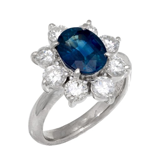 Mid Century GIA 4.55 carat no heat sapphire diamond platinum tank ring