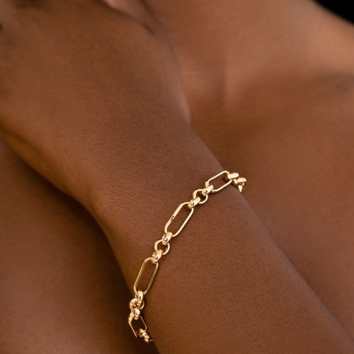 Mixed Link Chain Bracelet 18k Gold Plated One Size