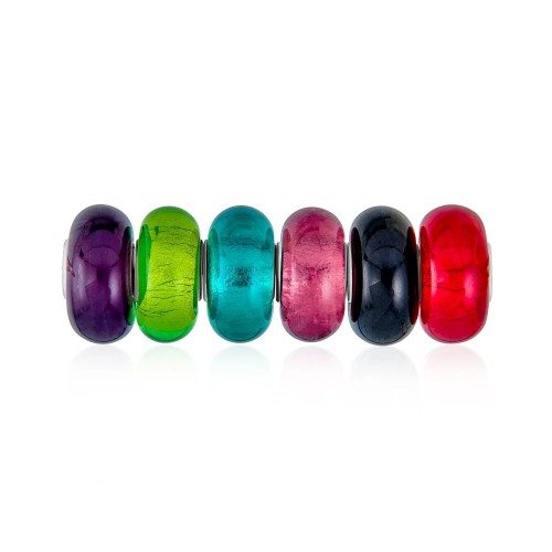 Mixed Set of 6 Murano Glass Charm Beads with Sterling Silver Core for Bracelets