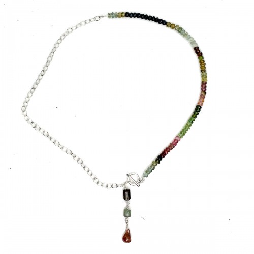 - Multi-Color Tourmaline & Sterling Silver Chain Y Necklace With Sterling Silver Toggle Clasp