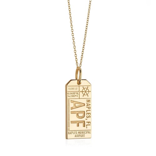 Recall your trip to a beach town of laid-back luxury on the balmy Gulf Coast with our gold travel charm featuring the airport code for Naples, Florida (APF). After a day of sportfishing, shelling or just sitting on the sand, join the well-dressed and well-heeled at the chic boutiques and refined restaurants along ritzy 5th Avenue. The Sunshine State doesn’t get swanker than this.