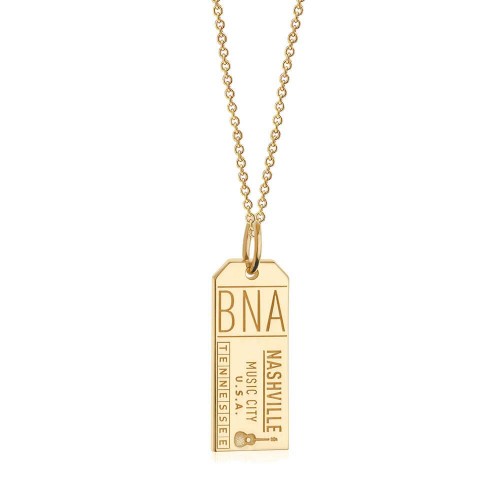 This 14k gold vermeil Nashville, Tennessee luggage tag charm features the Nashville International Airport IATA code, BNA. In Music City USA, everyone’s just a song away from becoming a star. Take the stage to release your inner Johnny Cash, Dolly Parton or Patsy Cline — or just sit back and enjoy the show.