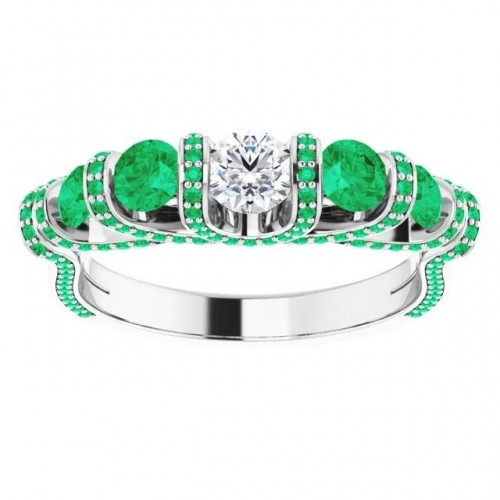 Stone Details : There is one diamond approx. 0.40 carats, four green emeralds approx. 0.80 carats and small green emeralds approx. 0.50 carats. Natural earth mined stones.