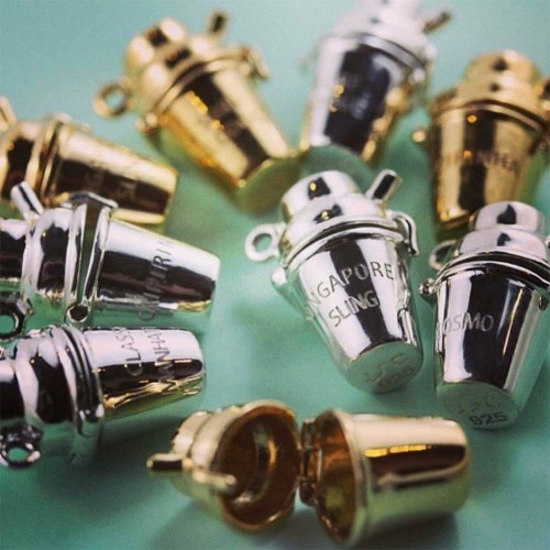 This miniature cocktail shaker, which reads “Classic Cosmo” on the base, opens and comes adorned with a recipe card with “New York City” inscribed on the back.