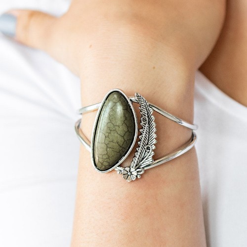 A collection of asymmetrical Mint cat’s eye stone teardrops are encased inside imperfect silver frames as they delicately link below the collar. The dainty silver frames are sporadically dotted in dainty silver studs and glassy white rhinestones, adding delicate sparkle to the ethereal display. Features an adjustable clasp closure.