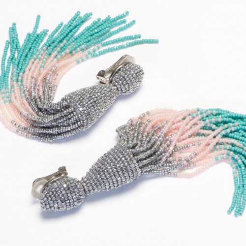 Be the first to review “Oscar de la Renta Silver Pink Green Glass Beads Tassel Shoulder Duster Earrings” Cancel reply