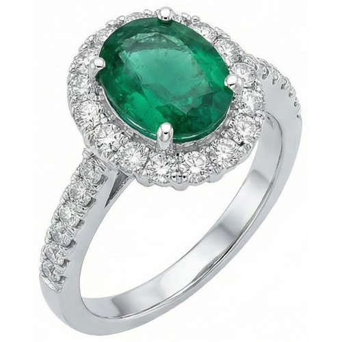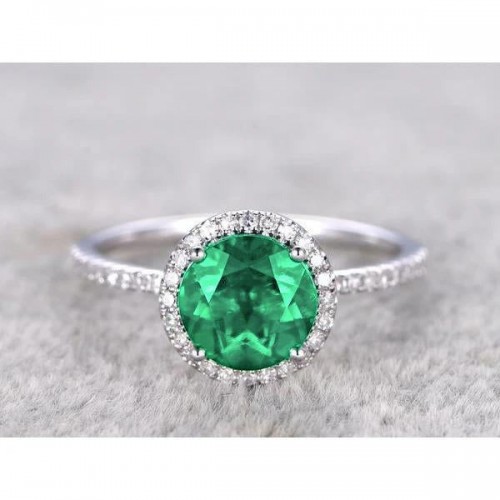 Stone Details : There is one green emerald in the center of approx. 2 carats and approx. 0.50 carats of smaller diamonds on the shank. Natural earth mined stones.
