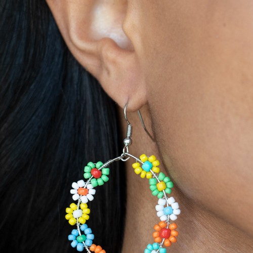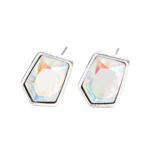 Featuring a raw asymmetrical cut, an iridescent gem is encased inside a sleek silver frame, creating a stellar display. Earring attaches to a standard post fitting.