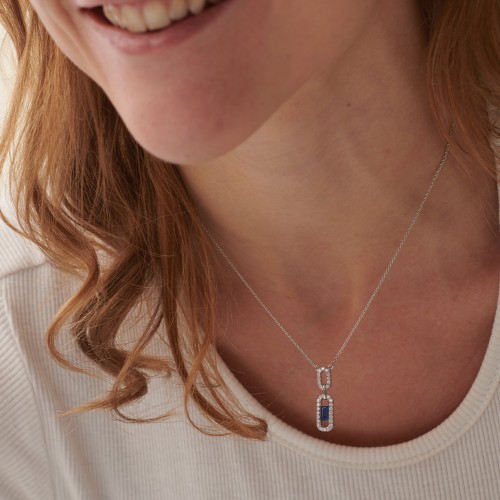 Elevate your neckline with this created sapphire and lab-grown diamond paperclip link necklace. The unexpected design is eye-catching, and the combination of sparkling gemstones adds a touch of unexpected luxury.