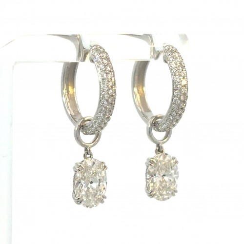 Pave Diamond Huggies with Oval Cut Drop