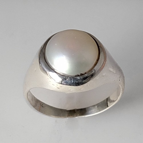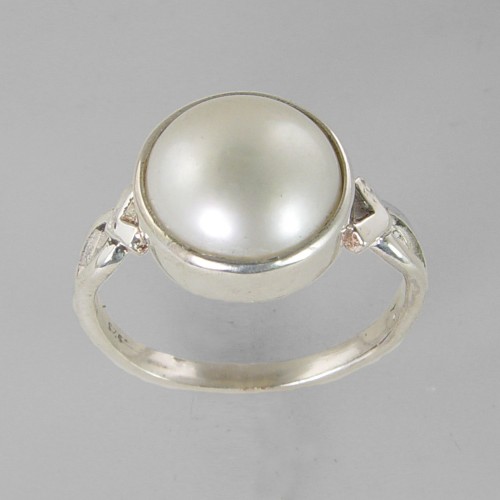 Pearl 5.5 ct Freshwater Pearl Bezel Set 14KW Gold Ring, Size 6.5